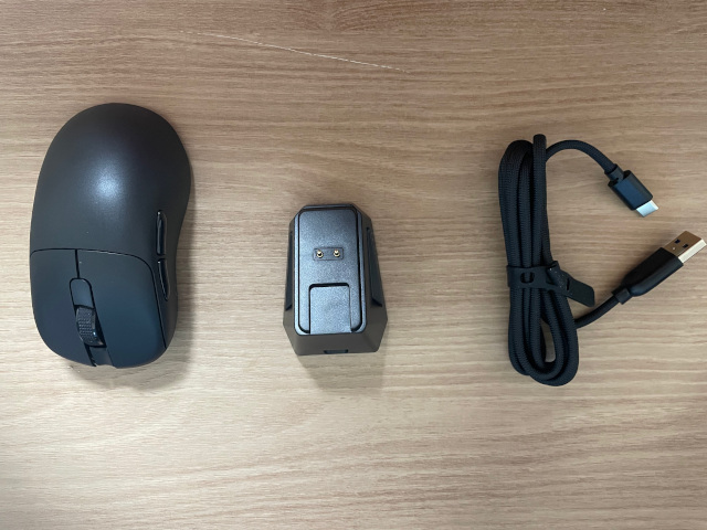 구성품은 마우스, 마우스 충전 겸 리시버, C타입 케이블 입니다.